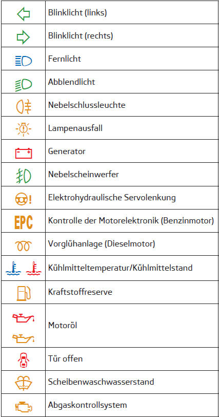 ■ Funktionsstörungen werden im Kombi-Instrument als rote Symbole (Priorität 1 -
